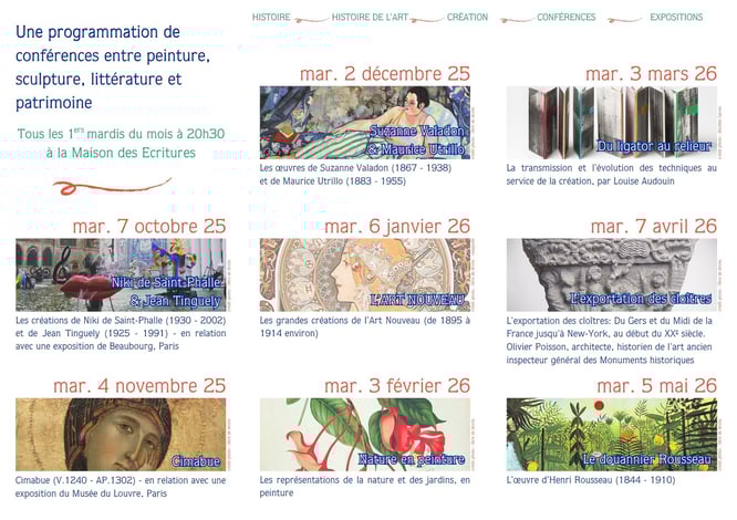 Venez découvrir une œuvre d'art, un peintre ou un mouvement artistique replacés dans leur contexte par mille anecdotes pleines de verve.
