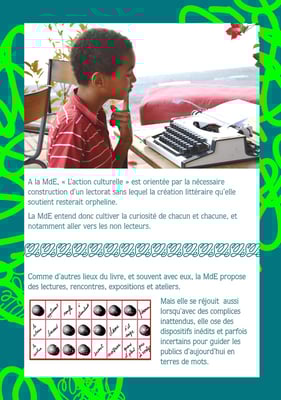 La MdE organise des occasions de rencontres entre ses résidents et tous types de publics. Dans les modalités des crédits de résidence du CNL, elles représentent par exemple entre une et deux journées par semaine de résidence.