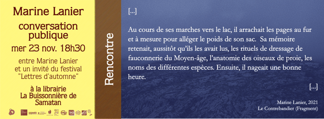 Si la Maison des Écritures de Lombez accueille Marine Lanier en résidence, c'est parce qu'elle n'est pas uniquement photographe : depuis toujours, elle pétrit aussi des textes et écume les librairies. Exploratrice de littératures, elle a en chantier plusieurs manuscrits de romans et nouvelles. Inversement, bon nombre de romanciers reconnus entretiennent un rapport étroit à l'image. D'où l'envie de provoquer une conversation publique sur les liens entre ces deux langages artistiques... avec naturellement vos questions et réflexions.