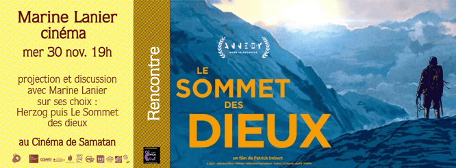 20h30 : projection du film d'animation "Le Sommet des dieux" (2021, 1h30), adapté de la bande dessinée de Taniguchi